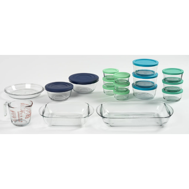 Anchor Hocking 32 Pc Bake & Store Glass Set with SnugFit™ multicolor lids