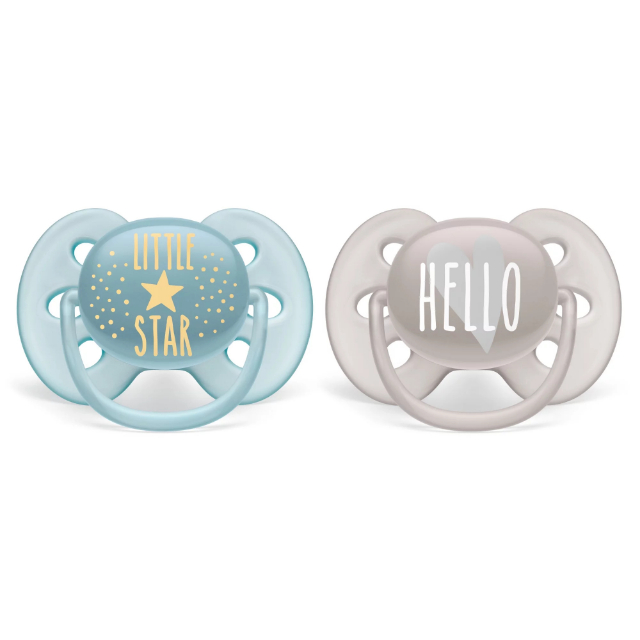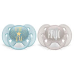 Philips Avent Ultra Soft Pacifier, 6-18 Months, Little Star and Hello Designs, 2 Pack, SCF223/01