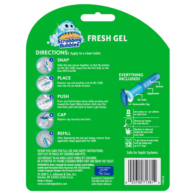 Be the first to review “Scrubbing Bubbles Fresh Gel Toilet Cleaning Stamp Rainshower Dispenser with 6 Gel Stamps 1.34 Oz” Cancel reply